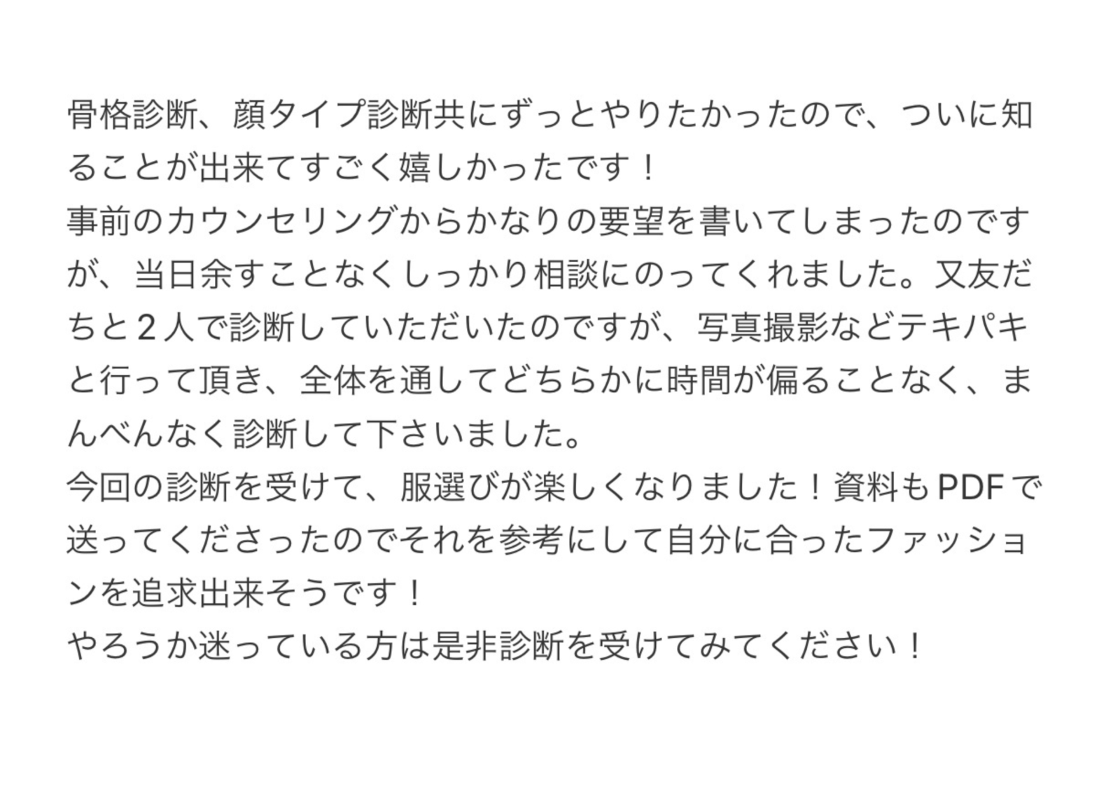 お客様の診断結果 友達とペアでトータル診断!自分に似合うものを知りたい -