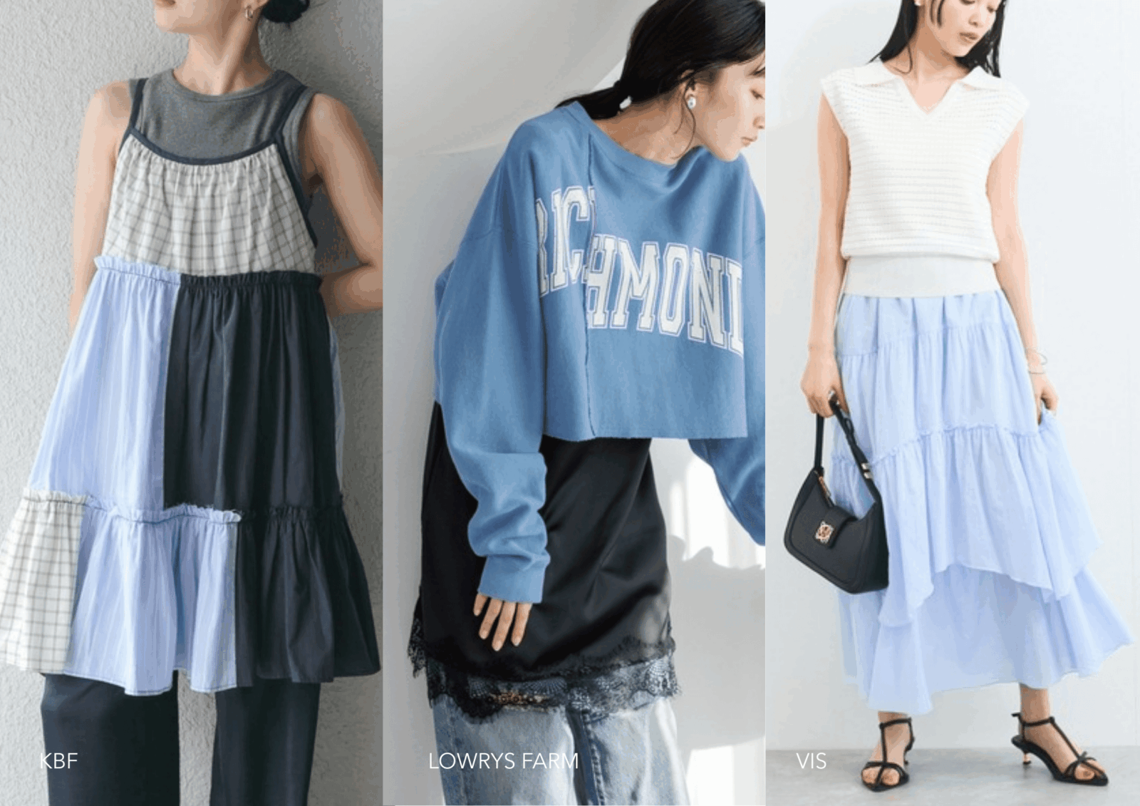 | ボトムス | フレアスカート、プリーツスカート、デニム、ワイドパンツなど |