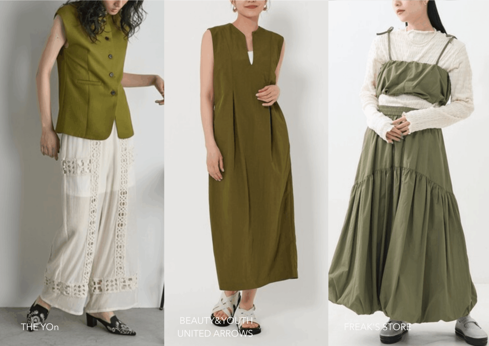 トップス:柔らかなオリーブグリーン